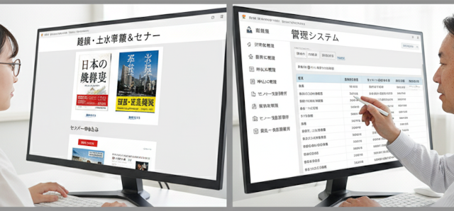 管理者側:利用者管理、各種申し込みの管理、セミナー受講票の発行など